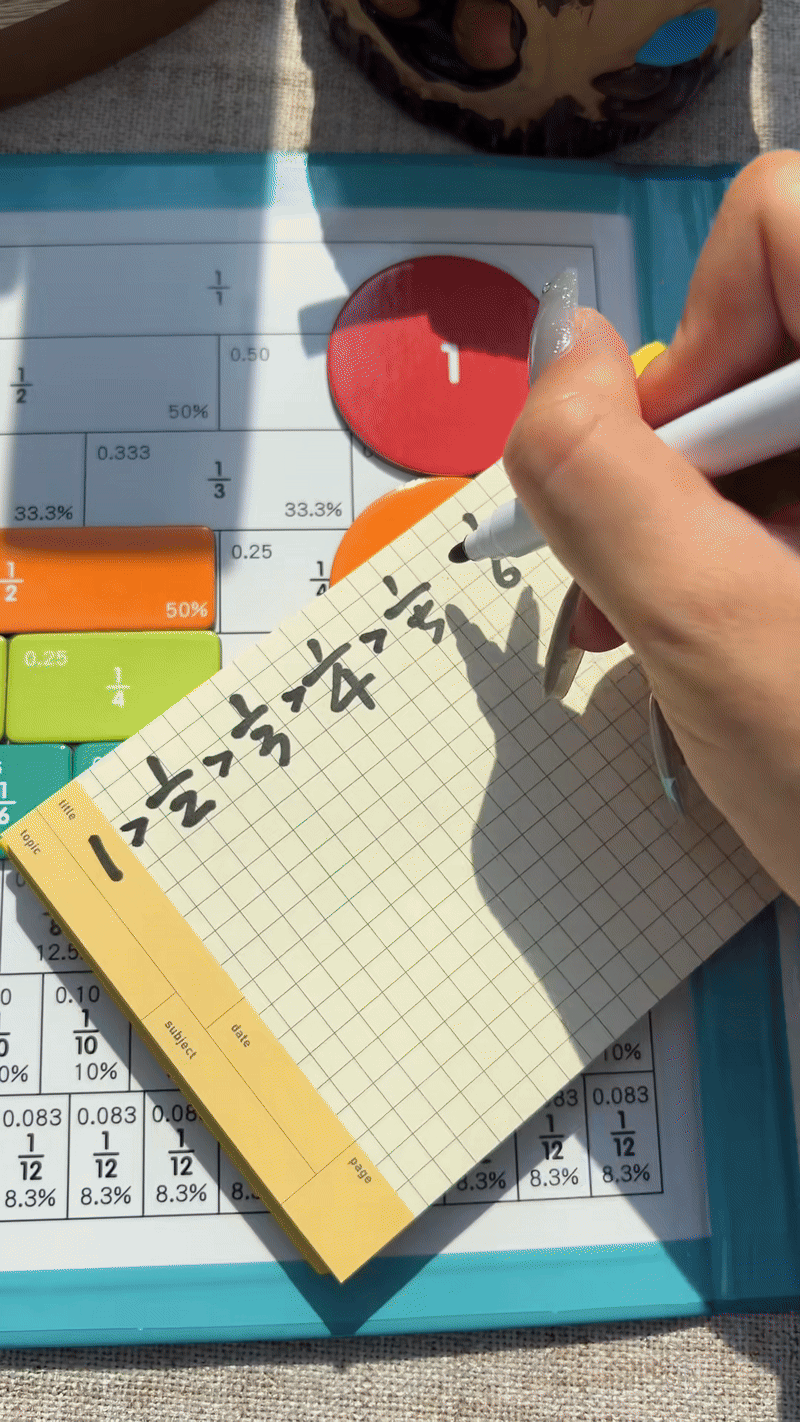Forget confusing equations and abstract numbers. This magnetic puzzle transforms fractions into tangible colors and shapes your child can touch, move, and instantly understand. Watch the lightbulb turn on as they intuitively master equivalent fractions, decimals, and percentages, making math fun, visual, and brilliantly simple. Learning this critical skill has never been this playful.